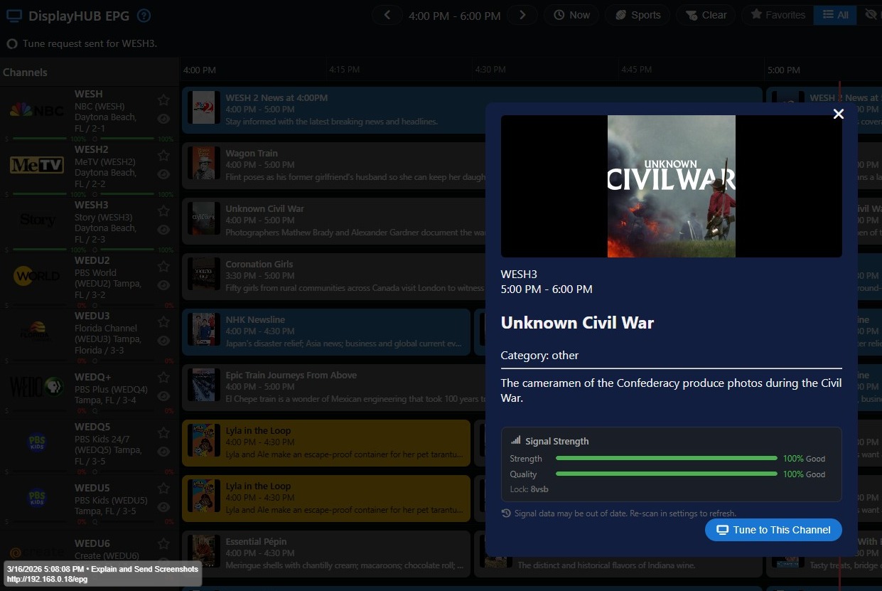HDHomeRun signal strength, etc. is now shown in the EPG and the now playing. This is helpful for deciding what channels to hide in the epg or if you want to try to tune that channel